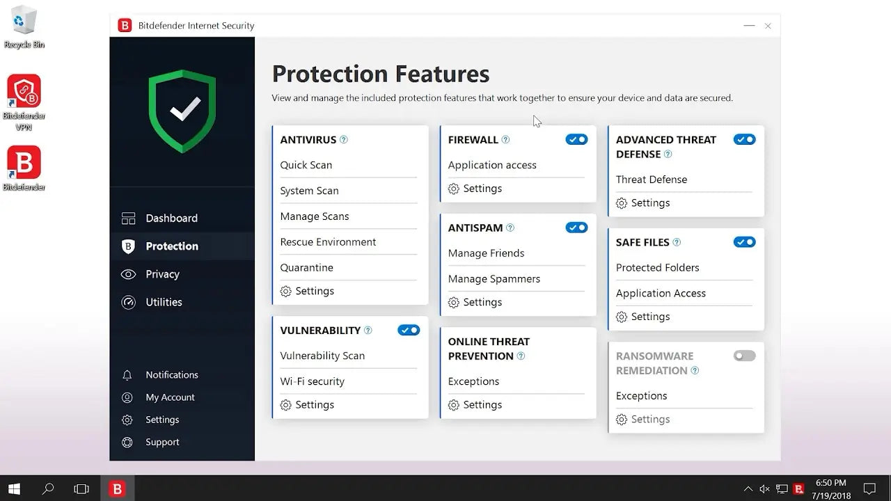 La protezione è ulteriormente rafforzata da un firewall multilivello che controlla e blocca le connessioni sospette. La funzione SafePay ti permette di effettuare pagamenti e operazioni bancarie online in totale sicurezza, mentre la VPN integrata protegge la tua privacy durante la navigazione su internet. Bitdefender è la soluzione ideale per chi cerca protezione completa senza compromessi sulle prestazioni del sistema.